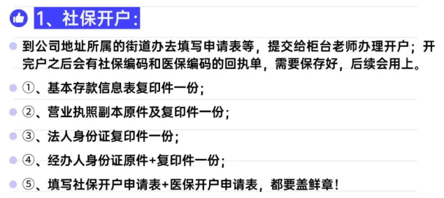 4、在辦理申報(bào)開戶的時(shí)候,準(zhǔn)備相關(guān)的材料還需要用到公章、財(cái)務(wù)章、法人章等,還需要辦理銀行開戶、用于后續(xù)的社保扣費(fèi);